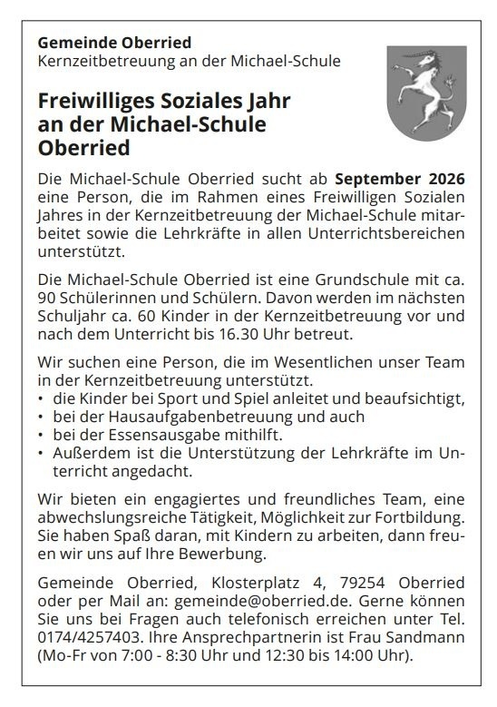 Die nächsten Termine der Michael-Schule-Oberried: